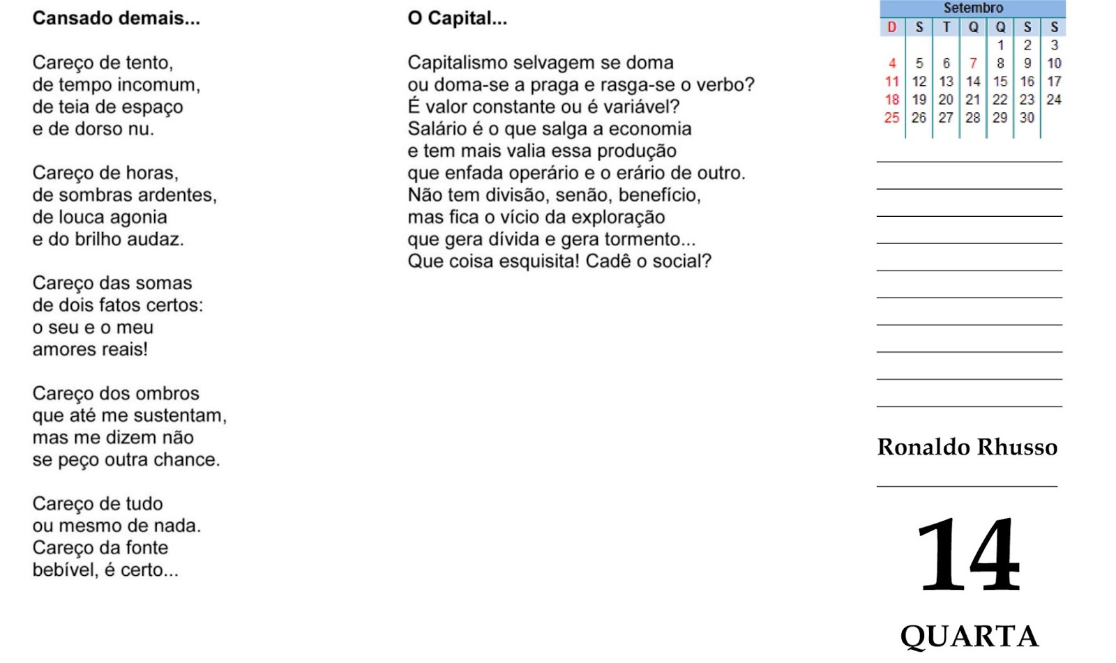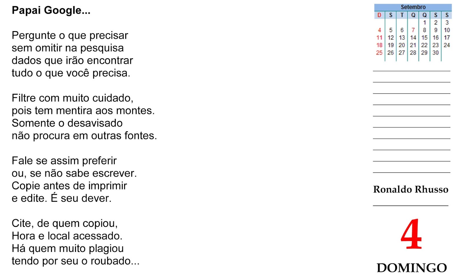 Quem não quer encher a pança / Com os versos de cada dia? / Quem não quer essa alegria? / Quem não quer uma lambança / De boniteza e esperança? / Quem não quer ver a aliança / Do hoje adulto com a criança / Do agora com a fantasia? / Quem não quer mais utopia? / Quem não quer a Poemança? /////////////////////////////////////////////////////////////////////////////////////////////////////////////////////////////////////// FOLHINHA poética 2019. A ser preparada a de 2021. Participe!
