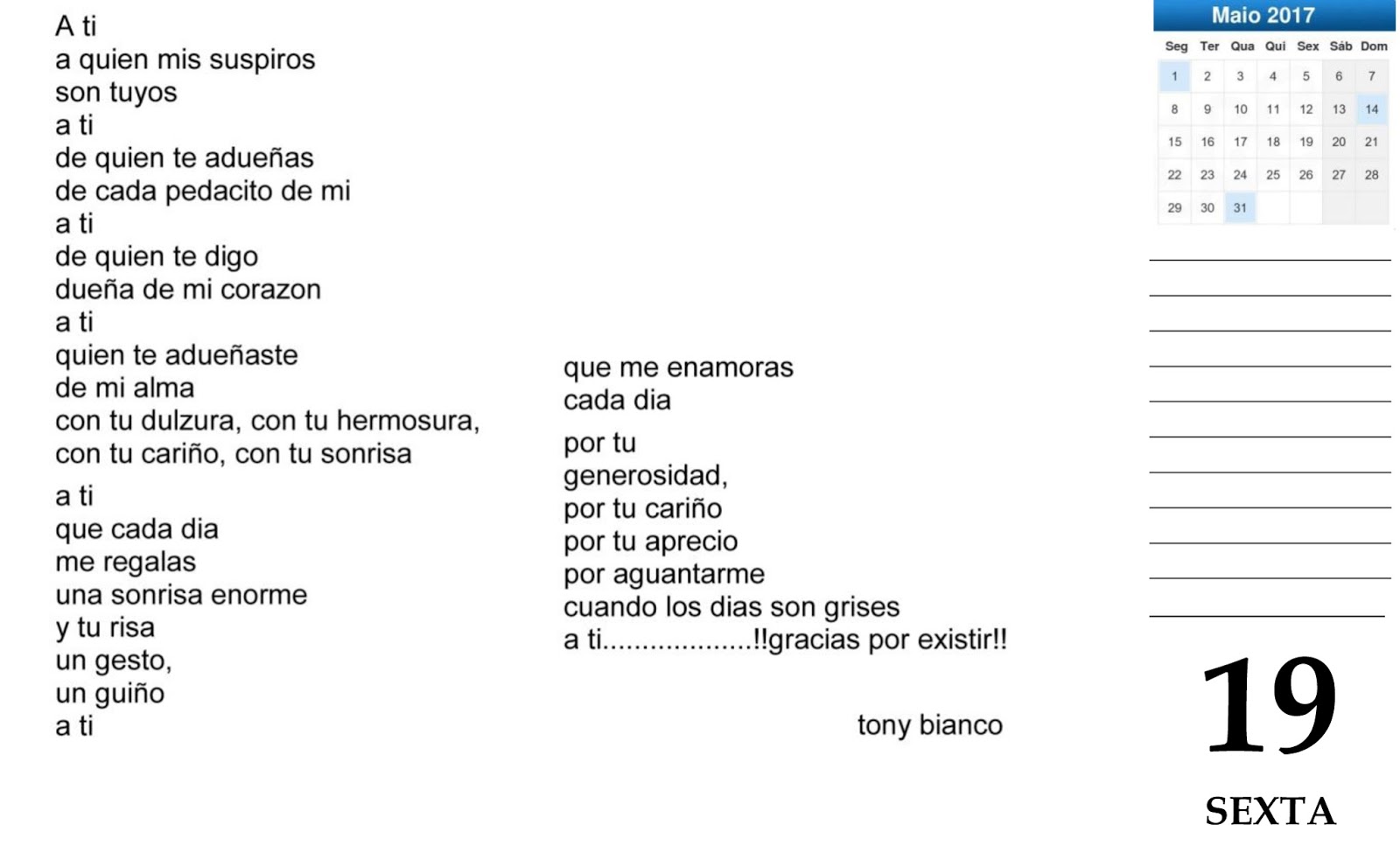 Quem não quer encher a pança / Com os versos de cada dia? / Quem não quer essa alegria? / Quem não quer uma lambança / De boniteza e esperança? / Quem não quer ver a aliança / Do hoje adulto com a criança / Do agora com a fantasia? / Quem não quer mais utopia? / Quem não quer a Poemança? /////////////////////////////////////////////////////////////////////////////////////////////////////////////////////////////////////// FOLHINHA poética 2019. A ser preparada a de 2021. Participe!