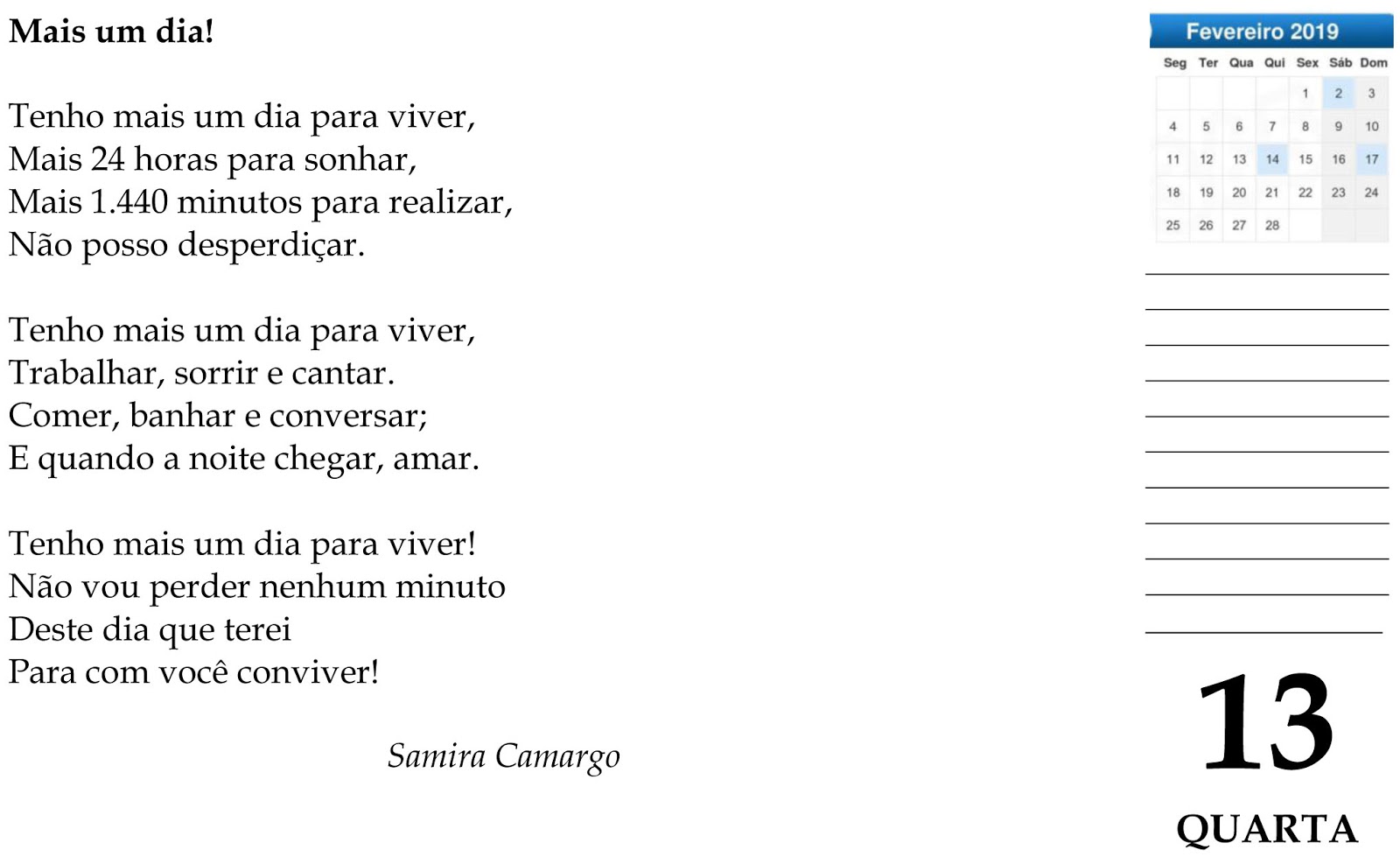 quarta-feira, 13 de fevereiro de 2019