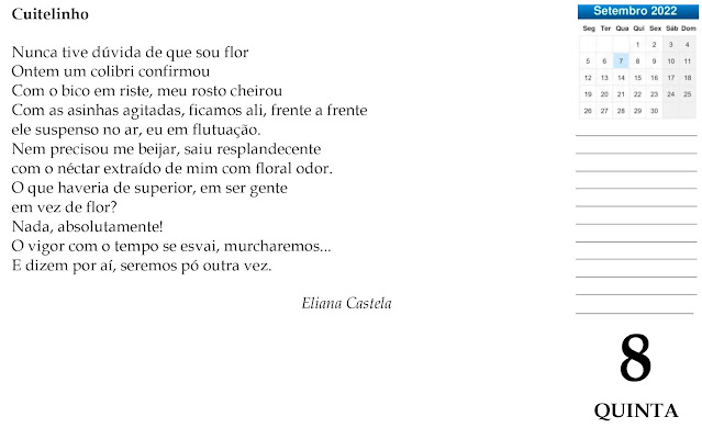 Quem não quer encher a pança / Com os versos de cada dia? / Quem não quer essa alegria? / Quem não quer uma lambança / De boniteza e esperança? / Quem não quer ver a aliança / Do hoje adulto com a criança / Do agora com a fantasia? / Quem não quer mais utopia? / Quem não quer a Poemança? //////////////////////////////////////////////////////////////////////////////////////////////////////////////////////////Folhinha de 2025 (Poetas de Barranco) Em preparação 2029 (Tema "Árvore") e 2030